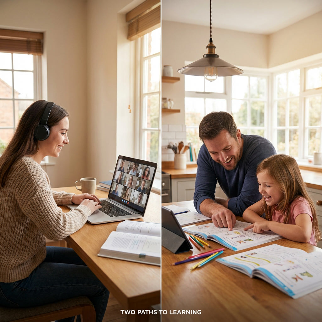 But the similarities mostly end at location. The structure, responsibilities, credentials, and legal requirements differ significantly. Choosing the wrong one because you didn't understand the distinction can create real problems, from overwhelmed parents who didn't realize what homeschooling required to families stuck in rigid online programs when they wanted more flexibility.